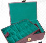 ![]() Double Tray #5101- Leathrette covered wooden chess box with soft velvet interiour avaliable in black color. With lock and handle. |